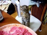 Котенок ищет еду на столе - Kitten look at table for food ))