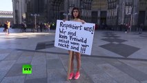 Milo Moiré manifeste nue contre les abus sexuelles perpétrés à Cologne
