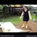 Watch how the cow kicked the girl
