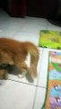 Little Kitty Playing With Doll