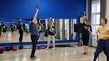 Спарринг на плоских круглых японских мечах чанбара катана в школе кендзюцу Katana Club в апреле