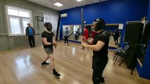 Удар финтом по руке с показом в голову коротким мечом в школе японского фехтования Katana Club