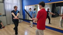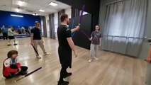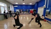 Тренировочный спарринг с новичком на длинных японских мечах чанбара в школе кендзюцу Katana Club.
