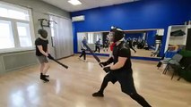 Спарринг на плоских двуручных японских мечах чанбара катана в школе кендзюцу Katana Club в феврале