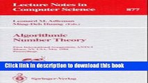 Read Algorithmic Number Theory: First International Symposium, ANTS-I, Ithaca, NY, USA, May 6 - 9,