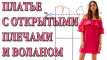 Как сшить красивое платье с открытыми плечами и воланом