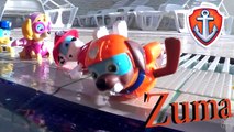 The team of toys from the cartoon Paw Patrol. Toys for water. We play in the pool and have fun-K_D41i8ssDM