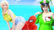Spiderman Frozen Elsa Funny Balls Prank in Pool w- Cinderella Anna Ariel Fun Superhero In Real Life