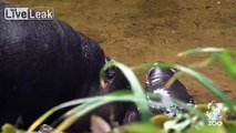Pygmy Hippo baby makes a splash