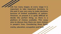 Nowadays people have more choices than the had in the past- IELTS Sample Answer task 2