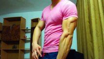 Hot Fighter Raul flexing his aesthetic muscles in a pink t shirt