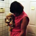 Just an adorable puppy spending some quality time with dad