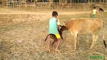 small kid trying to ride a claves