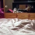 一个可爱的猫在看恐怖影片