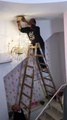 كهربائي بركب نجفة .. شاهد ما حصل