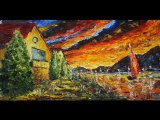 Как нарисовать картину золотой закат!