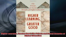 EBOOK ONLINE Higher Learning Greater Good The Private and Social Benefits of Higher Education BOOK ONLINE