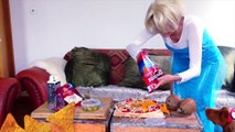 Frozen Elsa Batman & Spiderman dog cook a superhero pizza and open coconuts superhero in r