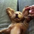 Look at this cute dogs ears when his owner touches them