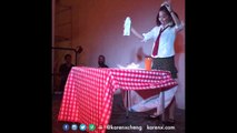 Girl dances like a robot having breakfast