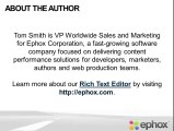 Certain capabilities within HTML editors can go a long way in tackling web accessibility issues. Specifically, your editor should have four essential capabilities, including accessibility checking as you type, creating accessible tables, inspecting content and providing accessibility reports and providing compatibility with assistive technologies. Learn more about our HTML editor capabilities by visiting http://ephox.com/.