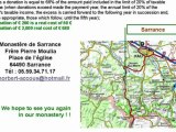appel du monastère de sarrance, de plus en plus débordé par le nombre de pèlerins de Saint-Jacques-de-Compostelle qui ont besoin d'hébergement. Il en vient plus de 1500 par an depuis quelques années, et il a besoin de volontaires et de finances pour restaurer l'établissement qui leur a été confié voici deux ans.
