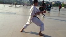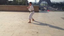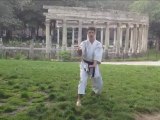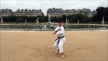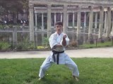 Heian signifie la paix tranquille. Sandan signifie troisième niveau, il s'agit donc du troisième kata de la famille des Heian. Heian sandan contient 21 mouvements, ce kata est basé sur la position kiba-dachi, il semble inspiré du kata jion. On y aborde les blocages ushi-uke, morote-uke, Empi-Uke et les attaques combinées Fumikomi et uraken. Heian Sandan est un kata représentant un combat rapproché on y retrouve plusieurs techniques de dégagements.