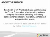 When searching for the best rich text editor, you need to focus on the solution that will excel in the six main areas. In addition you need to find an editor that also simplifies the web production and management process, boosts author productivity and, most importantly, enhances your website content. Learn more about our Rich Text Editor by visiting http://ephox.com/.