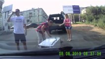 Субарист влетает в пробку на высокой скорости (A guy drives into a traffic jam)