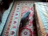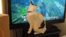 Un chat chasse à la télévision