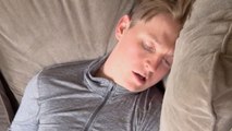 While sitting on a park bench, he set up a miniature bed next to his foot. When people passed by, he told them that his foot fell asleep and asked for their assistance.