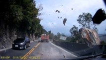 Violente avalanche de pierres à Taiwan sur une route de montagne!!