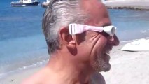 Voyage aux Cyclades Jean Mich se prélasse sur la plage sous le feu ardent d'Hélios