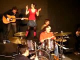 Ruby Brune (chant / basse), Sportès aux choeurs et Mathieu Boogaerts à la batterie, à la guitare Fred Bouchain et Fabien Martin au piano
