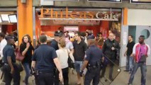 Policier lisant l'arrêté contre les veilleurs 31 08 2013