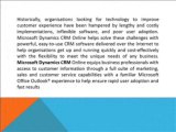 http://goo.gl/z9h5ab Microsoft Dynamics CRM is a customer centric Customer Relationship Management (CRM) solution designed to support the effective management of customer relationships and lifecycle, from initial lead right through to after sales activity.
