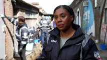 Humanoid robot chases wild boars across Poland parking lot