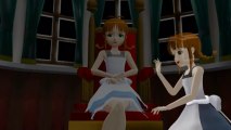 The dance team strikes again as Kage, dressed as an interesting take on Alice(Or possibly a steampunk lolita) takes on the role of a poor, lost village girl who happens upon a mansion where the welcoming inhabitants, Romey, dressed as Miku, Sally, dressed as a devil, and Tamaki, dressed as a gentleman, are frozen in time, searching for their happy ending. It's up to Kage to help them be free...but the pressure is too much and the little village girl snaps!