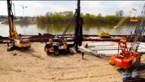 Instalacja pali pod centralną podporę mostu na Wiśle w Toruniu.