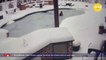 Surveillance video shows woman jumping into frozen pool to save dog