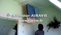 Guide d'installation de l'étendoir à linge suspendu AIRAVIE (boutique en ligne - www.ravvie.fr). Etendoir de plafond ou mural astucieux , avec des barres d'étendage séparées qui peuvent être montées et descendues facilement. Solution pratique et gain de place.