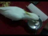 pappagallo che fa colazione