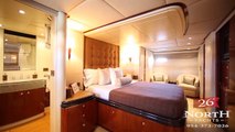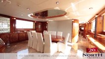 www.26northyachts.com The 2005 Horizon 78' Bella Mare shows in excellent condition, conveniently located minutes from the Fort Lauderdale Airport. Bella Mare carries a three stateroom layout plus crew quarters powered by twin MAN engines at 1550 hp apiece. Featuring an enclosed Sky-Lounge, Country Kitchen, and full beam Main Salon, she offers the interior volume of a much larger yacht. Other features include hydraulic bow and stern thruster, TRAC stabilizers, chilled A/C, water maker and more. The 11' Boston Whaler can easily be boarded from the large swim platform that's a perfect setup whether your an avid diver or fisherman.