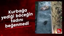 Kurbağa ağzına attığı böceğin tadını beğenmiyor
