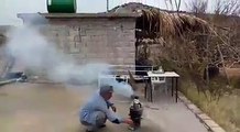 Goalkeeper hit by exploding FLARE during Soccer match