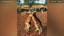 Cangurus praticam kickboxing juntos