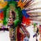 Guerreros danzantes con traje de terciopelo, lentejuela, bonete de plumas multicolor.