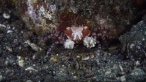 Pom-Pom boxer crab with sea anemones in claws steals the show with its moves