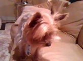 new funny Yorkie finds a place to bury treats