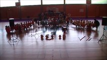 les 60 enfants de l'école maternelle du grand Fraisses, entre 3 et 6 ans, lors de la représentation de la chorale. accompagnés par le groupe de percussions Tamadjam. Bambali, chant africain. un groupe en ostinato, 2 groupes en mélodie.